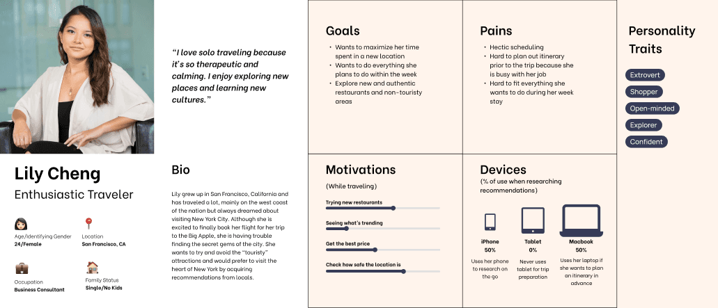 To better understand travel habits and planning pain points, I interviewed and surveyed 15 people from both large and small cities. Here are some key insights I gathered from their experiences…
